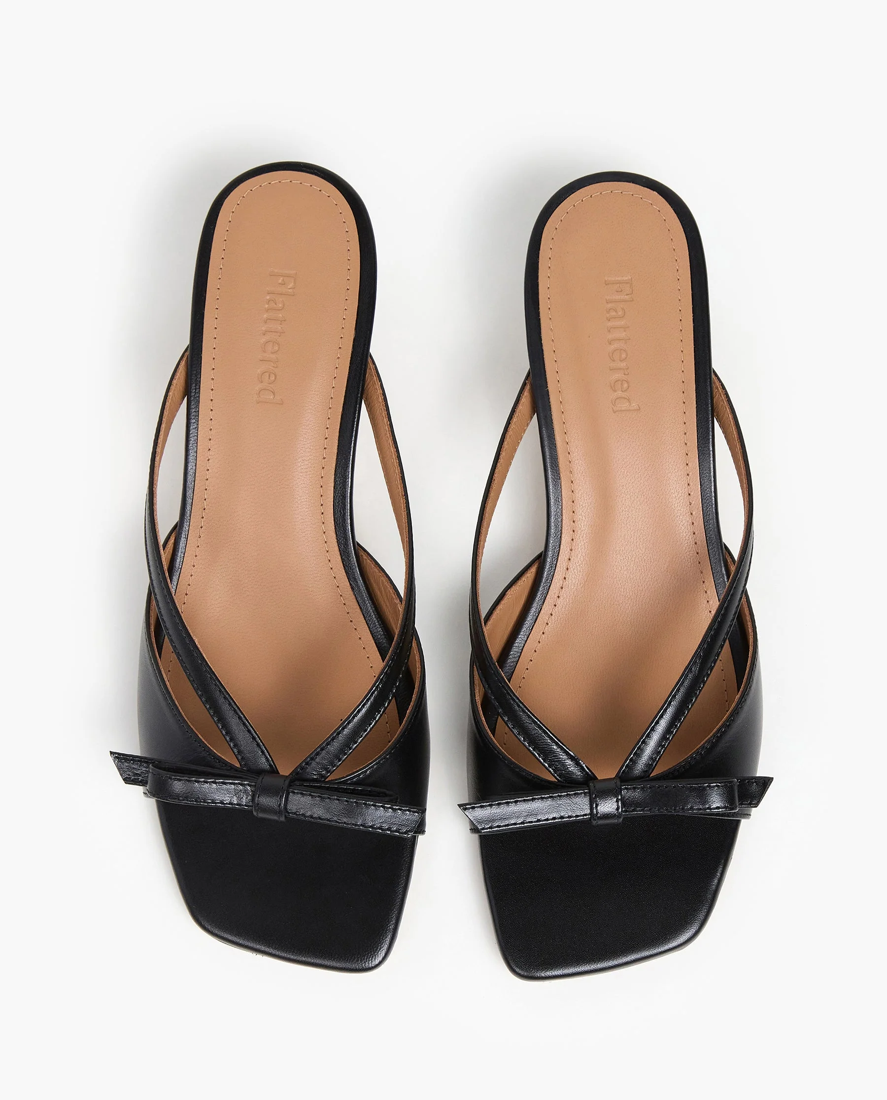 A kitten heel sandalette with thin straps and knot.